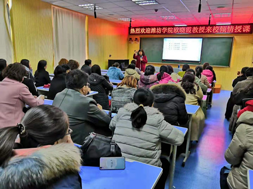 3月16日下午,我院欧晓霞教授为潍城区青年路小学全体教师送上了一场题为《塑造阳光心态,做幸福教师》的精彩讲座,内容结合当前小学教师的现状和面临的实际问题,围绕情绪和压力管理、职业倦怠和提升幸福感等内容层层展开,贴近现实的案例、妙语连珠的讲解、诙谐幽默的语言,得到教师们的热情响应,掌声不断,互动频繁。讲座结束后,青年路小学校长深有感慨地说,像这样有意义的活动应该广泛、多次、持续地开展,为广大中小学教师带来更多的福利。学院办公室副主任郑丽华和陈晓丽博士一起参加了活动。