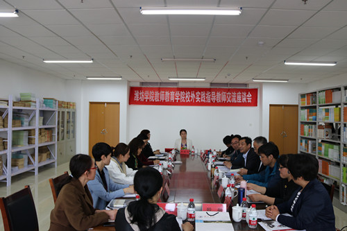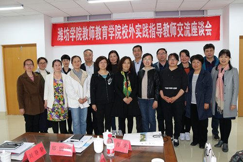4月18日下午,教师教育学院在安顺校区3号楼31010室举行了校外指导教师交流座谈会。在教师教育学院院长耿建民主持下,教师教育学院各位教研室主任、教授、博士等与来自潍城区的教师教育学院教学实践基地的各位教学名师进行了深度交流。