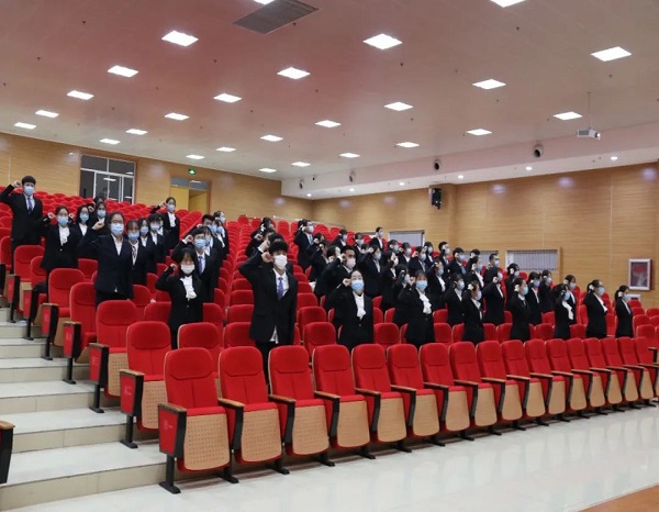 会上,主持人介绍、欢迎了与会领导,并宣读了第九届学生会获奖名单,领导老师为获奖团体及个人颁发奖状证书。第九届学生会主席王新宇宣读第十届学生会成员名单,并由出席此次会议的领导老师为部门负责人颁发聘书。第十届学生会主席团负责人张厚义发表就职演讲,他表述了自身对学生会工作的承诺,并对新成员表达了欢迎与希望,展示了对未来工作的计划,表达了对工作的设想与决心。新旧主席团交接会旗代表了责任的传承、使命的延续,会旗的高高飘扬昭示了第十届学生会担当自身使命的决心。第十届学生会主席团负责人杨静仪带领同学们学习《学生会、研究生会自律公约》,号召同学们遵守公约章程、维护学生会组织形象。第十届学生会主席团负责人张厚义带领全体学生会成员进行宣誓。同学们铿锵有力的声音、坚毅自信的表情彰显了他们对担当使命、做好工作的信心。