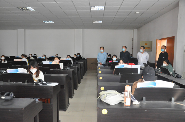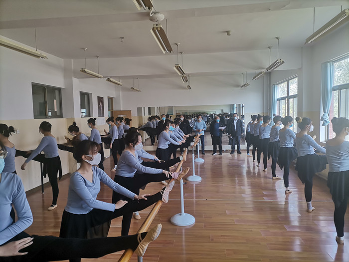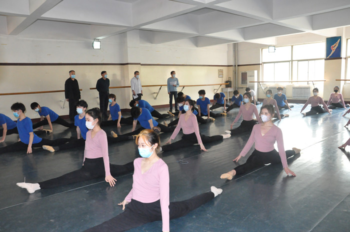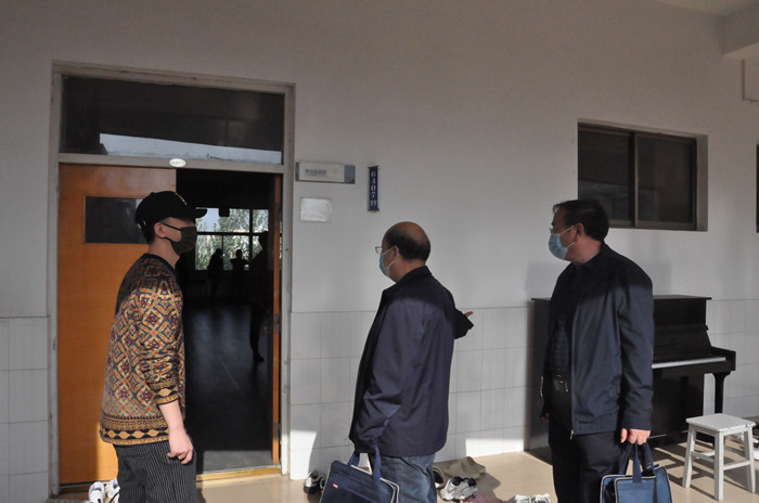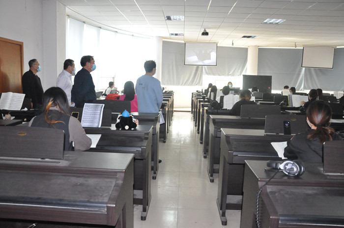 日潍坊学院安顺校区开始施行相对封闭管理。图为学院领导检查线下技能课教学情况。