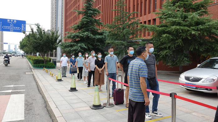 辅导员、教师模拟返校学生,间隔1米,从安顺校区大门排队通过入校专用通道。保安人员在体温检测点,依次为“学生”检测体温、通过“学生”扫描场所码查验健康码、行程卡和48小时内核酸检测阴性证明。校医在安顺校区大门临时留观点,负责体温检测异常学生重测体温及查验持非绿码、行程码异常及有关地区学生的核酸检测证明。我院对健康码为黄码的情况进行了演练。健康码查验时发现第四个“学生”健康码为黄码,保安指引其到临时留观点,由校医测量体温正常,查验48小时内核酸检测结果阴性,询问旅行史,启动应急处置。联系专车,转送黄码“学生”到潍城区集中隔离点隔离观察。