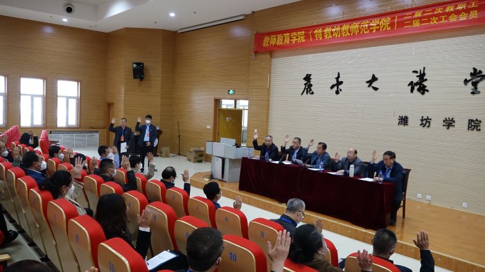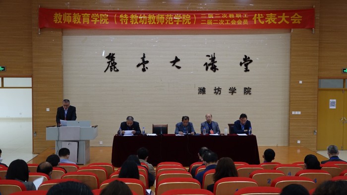 本网讯 4月28日,教师教育学院(特教幼教师范学院)在安顺校区3号楼四楼报告厅召开二届二次“双代会”。学院领导班子成员出席会议,“双代会”代表参加会议。