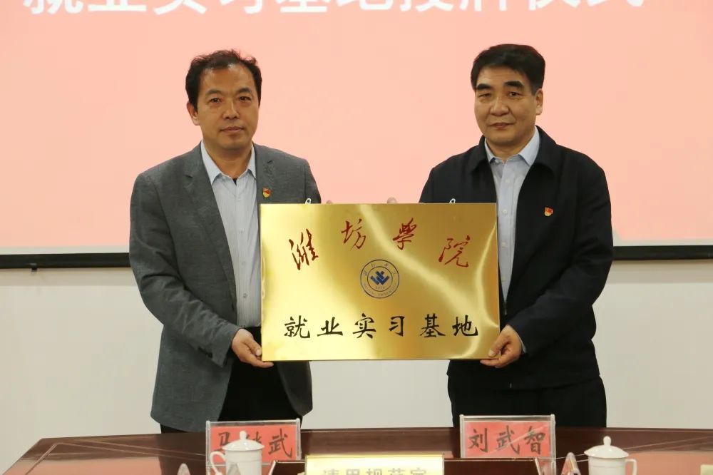 会上,双方签订了就业实习基地合作协议并举行了“潍坊学院就业实习基地”揭牌仪式。与会人员表示,希望两校以本次揭牌仪式为契机,坚持优势互补、互惠互利、共同发展,进一步加强交流合作与业务对接,共同提升人才培养的质量水平。