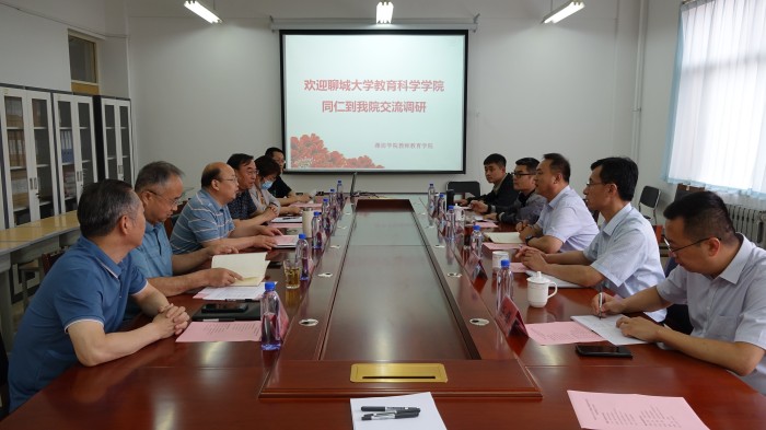 5月25日,聊城大学教育科学学院院长李军一行5人到访我院。院长魏晨明,副院长董守生、倪烈宗及相关科室负责人在安顺校区接待了李军一行并进行座谈。座谈会由魏晨明院长主持。魏晨明首先对李军一行来访表示欢迎,接着介绍了我院的基本情况、发展思路、取得的成绩及今后发展的方向。李军介绍了聊城大学教育科学学院的办学特色、学科与专业建设情况。双方还就资源共享、人才培养、专业建设等方面加强合作进行了交流探讨。