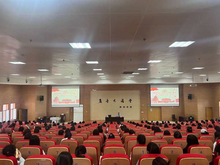 本网讯 6月8日,学院党总支副书记尹翔在安顺校区三号楼四楼报告厅为学生上党课。党课的主题是“深刻领会主题教育的重大意义,争做优秀学生党员”。学院团总支书记沈杰主持会议,教师代表、学生党员、学生入党积极分子以及主要学生干部参加了学习。