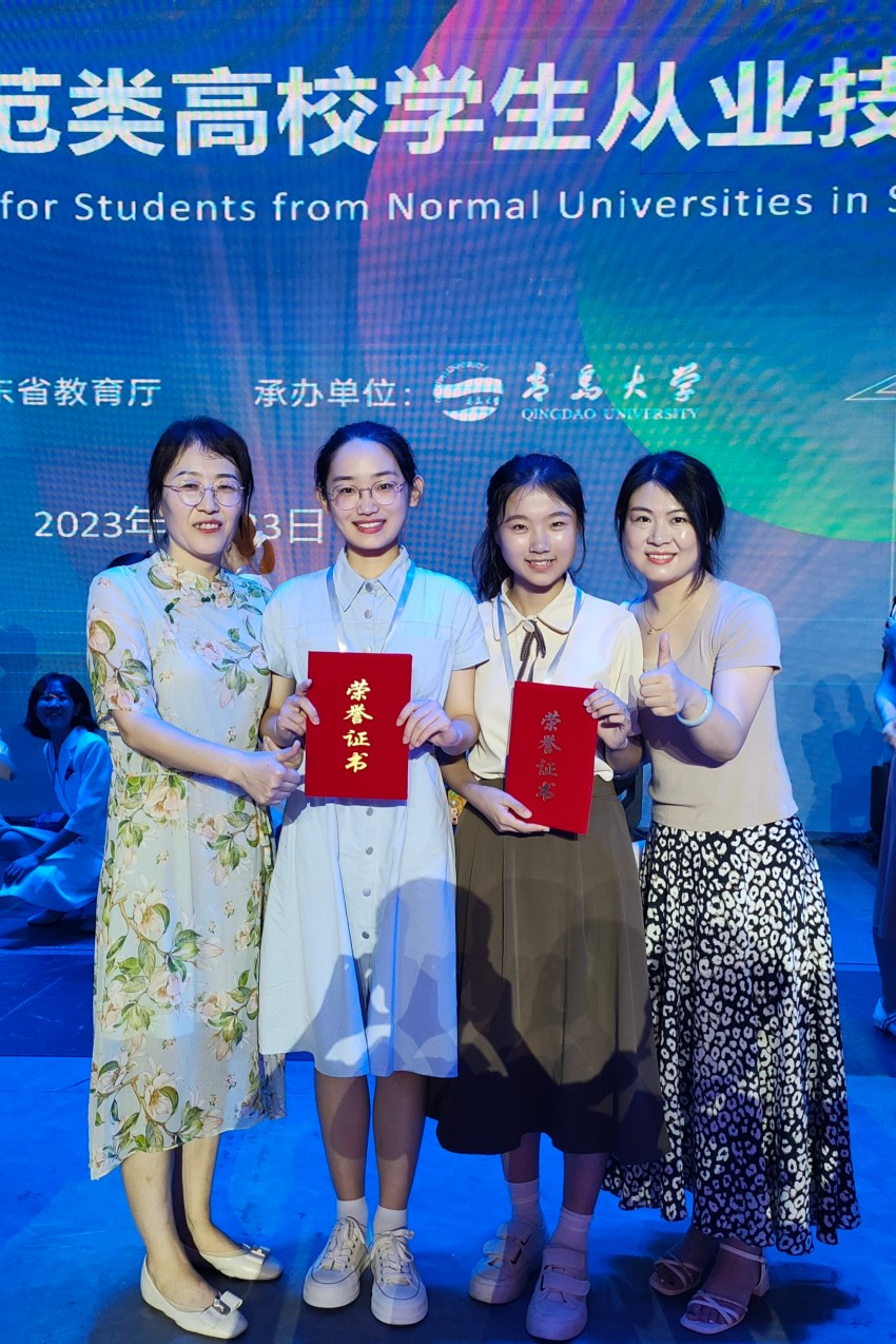 本网讯 7月23日,山东省第十一届师范类高校学生从业技能大赛在青岛大学落下帷幕,我院取得两个一等奖,三个二等奖,一个三等奖的好成绩。