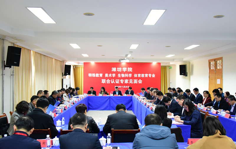 本网讯 11月19日-22日,教育部联合认证专家组一行24人对我校特殊教育、美术学、生物科学、体育教育四个师范类专业进行二级认证现场考查。南京师范大学叶忠教授任联合认证组长兼特殊教育专业认证组组长,大连大学庞国彬教授任美术学专业认证组组长,河南师范大学张顺利教授任生物科学专业认证组组长,南京师范大学王庆军教授任体育教育专业认证组组长,山东省教育科学研究院副院长张斌出席见面会,山东省教育科学研究院师范类专业认证中心主任唐文秀参加相关活动。