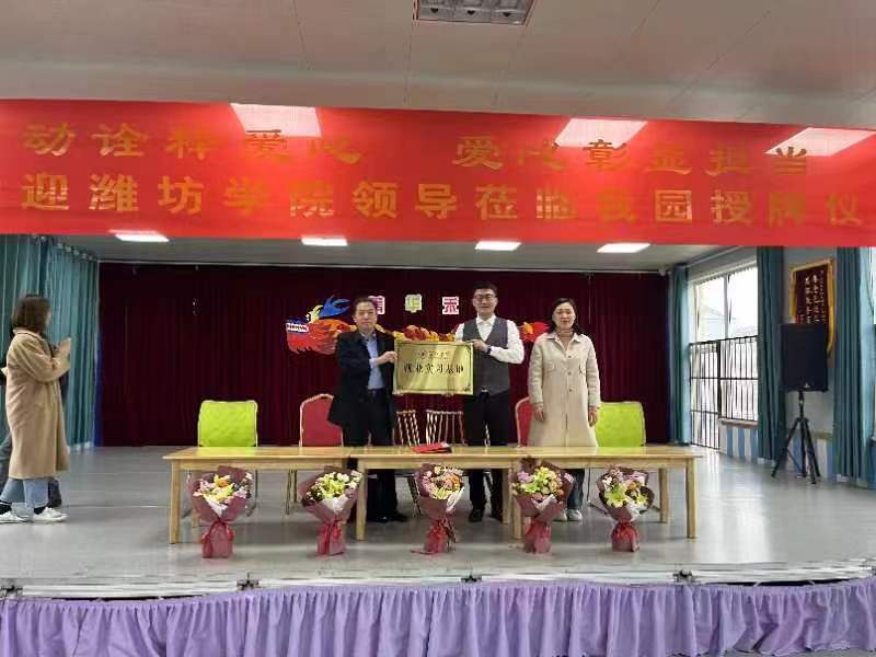 仪式上,马继武分别介绍了潍坊学院、教师教育学院(特教幼教师范学院)及学前教育专业的发展情况,双方签署了合作协议并举行了“潍坊学院就业实习基地”揭牌仪式。