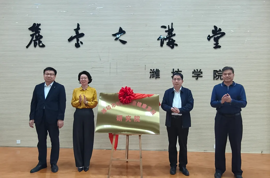 活动期间,学校党委委员、副校长苗金春,潍坊市残疾人联合会党组书记、理事长王妍妮,潍坊市教育局党组成员、副局长宋炳华,潍坊市卫生健康委员会计划生育协会二级调研员张新军共同为研究院揭牌。