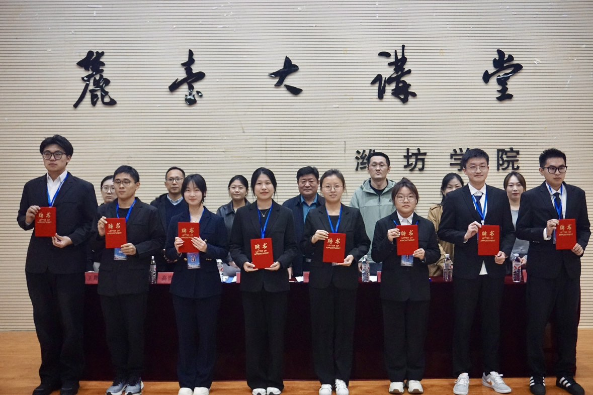 大会伊始,李明蔚宣读第十五届学生会主席团及负责人成员名单,领导、老师为新一届主席团成员颁发聘书。