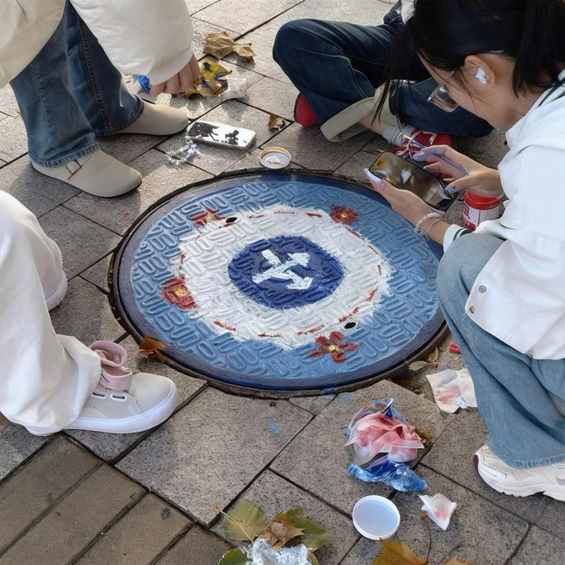 活动伊始,组织者向参与同学详细讲解了井盖安全的重要性,介绍了此次彩绘活动的主题要求与创作思路,并向同学们分发了环保丙烯颜料,画笔等绘画工具。同学们以安全知识,校园生活,趣味卡通等为元素,拿起画笔在井盖上尽情创作。他们分工合作,有的勾勒轮廓,有的填充色彩,原本单调的井盖在大家的巧手下变得色彩斑斓,趣味十足。一幅幅创意满满的井盖彩绘,不仅为校园增添了一抹亮丽的风景线,更将安全知识以生动形象的方式传递给每一位师生,让大家在欣赏艺术的同时,牢记安全出行的重要性。整个过程井然有序,同学们在协作中增进了友谊,在实践中提升了艺术素养与安全意识。