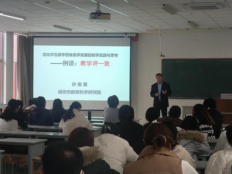 近日,学院特邀潍坊市教育科学研究院课程研究科科长孙俊勇,为小学教育专业学生带来了一场题为“指向学生数学思维素养发展的教学实践与思考”的专题讲座。