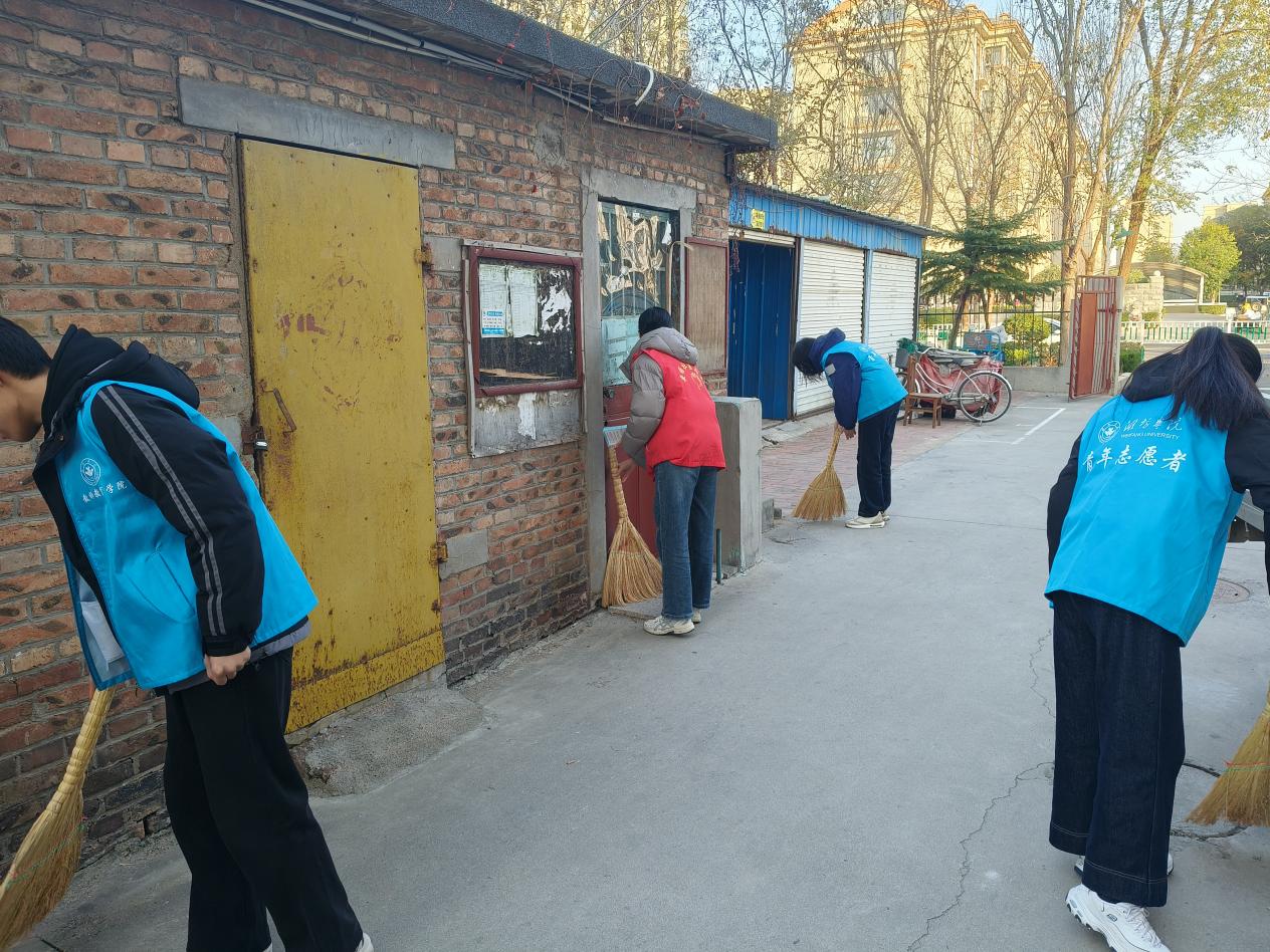 为响应“百万大学生进社区”活动号召,切实改善老旧小区地面卫生状况,营造洁净宜居的居住环境,11月20日,学院组织学生志愿者,开展扫地清洁志愿服务活动。学子们以扫帚为笔、以行动为墨,为社区拂去尘埃,用青春力量传递温暖与担当。