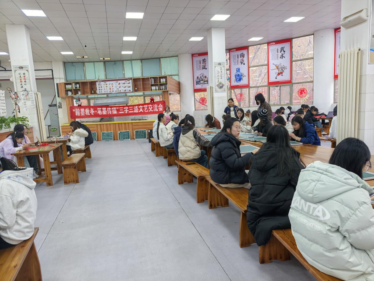 为深化社区文化节育人实效,丰富校园文化生活,助力学子心理素质拓展,营造积极向上、温润和谐的社区氛围,11月23日,学院在餐厅二楼成功举办“翰墨裁冬,笔墨传福”—“三字三迹”文艺交流会。同学们在墨香与笑语中共赴一场兼具文化韵味与心灵成长的冬日之约。