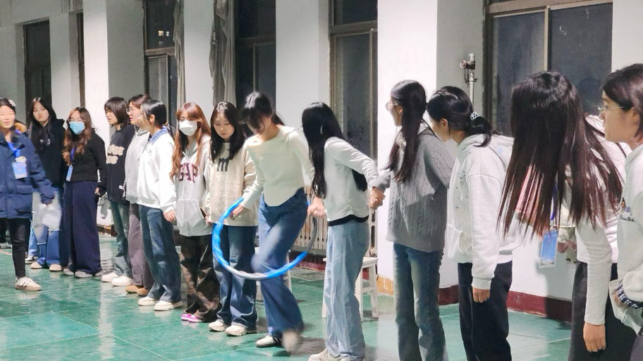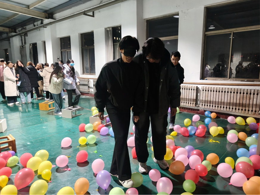 随着主持人激昂的开场白,活动正式拉开帷幕。在“信任盲行”的区域内,一位同学戴上眼罩,在同伴的扶持和引导下,谨慎地在气球间穿梭,每一步都充满对同伴的信赖;“呼啦圈接力”的场面更是热烈非凡,同学们手挽手一字排开,随着呼啦圈在队伍中巧妙传递,他们的动作时而协调一致,时而因小失误引发一阵温馨的笑声,随即又快速调整,展现出高度的默契;而“团队拥抱”环节,不同班级的同学迅速集结,紧紧相拥,在体温和力量的传递中,陌生感逐渐消融,团队的凝聚力在此刻得到了充分体现。每个项目区域都充满了欢声笑语,同学们全身心地投入其中,尽享运动与协作带来的乐趣。