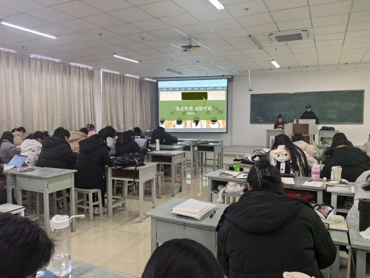 为营造公平、公正、诚信的考试氛围,进一步强化同学们的纪律意识与诚信观念。1月5日,学院各班级组织召开了以“诚信应考”为主题的班会活动。此次班会旨在通过集体讨论和思想引导,帮助学生树立正确的考试态度,共同维护良好的考试环境。