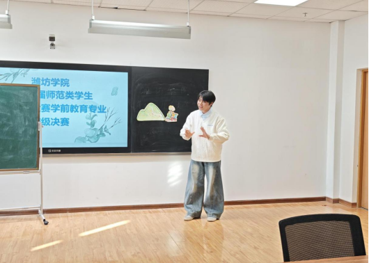 本网讯 1月8日,学前教育专业师范生从业技能大赛校级决赛在安顺校区31001教室顺利举行。本次大赛旨在深入贯彻山东省教育厅关于高校师范生从业技能大赛的相关要求,切实提升学前教育专业学生的教学实践能力与综合素养。比赛邀请学前教育专业六位资深教师担任评委,对参赛学生的专业能力进行全面考察。
