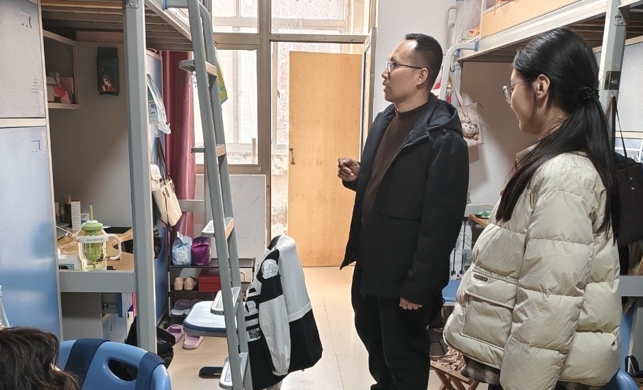 在检查过程中,辅导员老师们与同学们进行了亲切交流,详细询问了大家的日常学习与生活状态,叮嘱同学们注意春季作息,保持良好生活习惯,并再三强调安全意识不可松懈。老师们指出,寝室既是生活场所,也是精神家园,希望同学们既能守得住安全底线,又能打造出富有个性的宿舍文化。