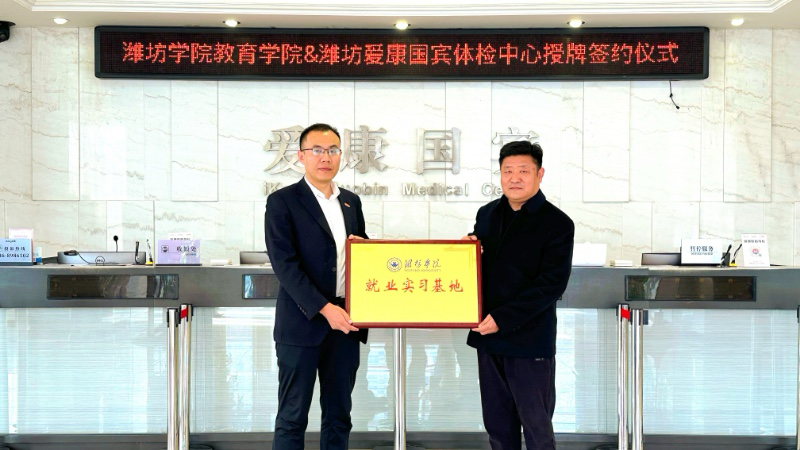 为进一步搭建学院学生实践成长与职业发展桥梁,创新校企协同育人路径。3月21日,学院党委副书记、副院长许华波一行赴潍坊爱康国宾健康体检中心有限公司开展“就业实习基地”签约暨揭牌仪式。潍坊爱康国宾健康体检中心有限公司总经理张涛出席活动。
