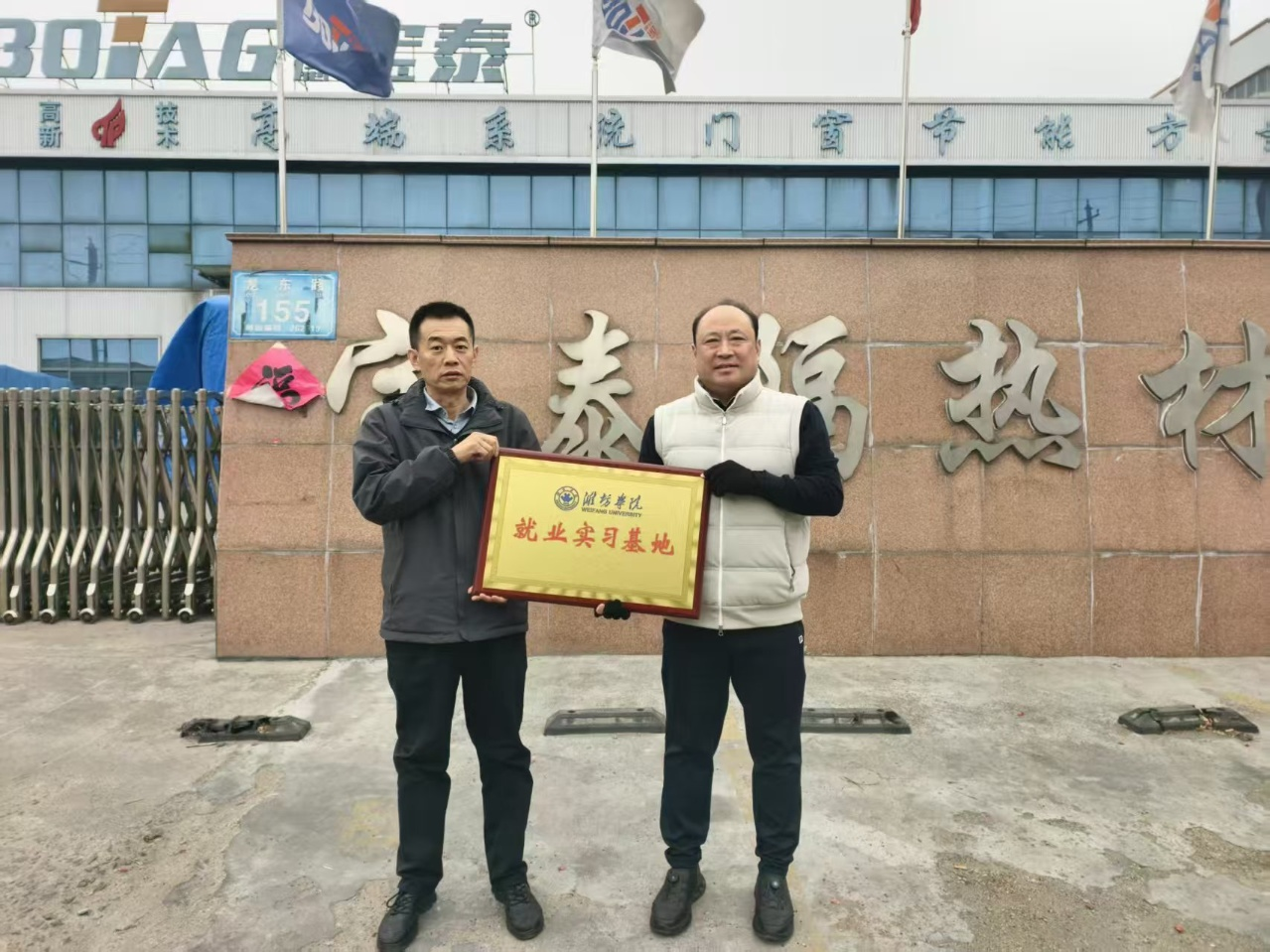 为进一步拓宽学院学生实习实践与就业渠道,积极探索校企协同育人新模式。3月17日,学院先后前往山东宝泰隔热材料有限公司、山东秦池酒业有限公司,举行“就业实习基地”签约暨揭牌仪式。活动由教师教育基地办公室主任窦荣坛带队,山东宝泰隔热材料有限公司人力资源经理辛建、山东秦池酒业有限公司人力资源经理魏明及企业相关负责人参加活动。