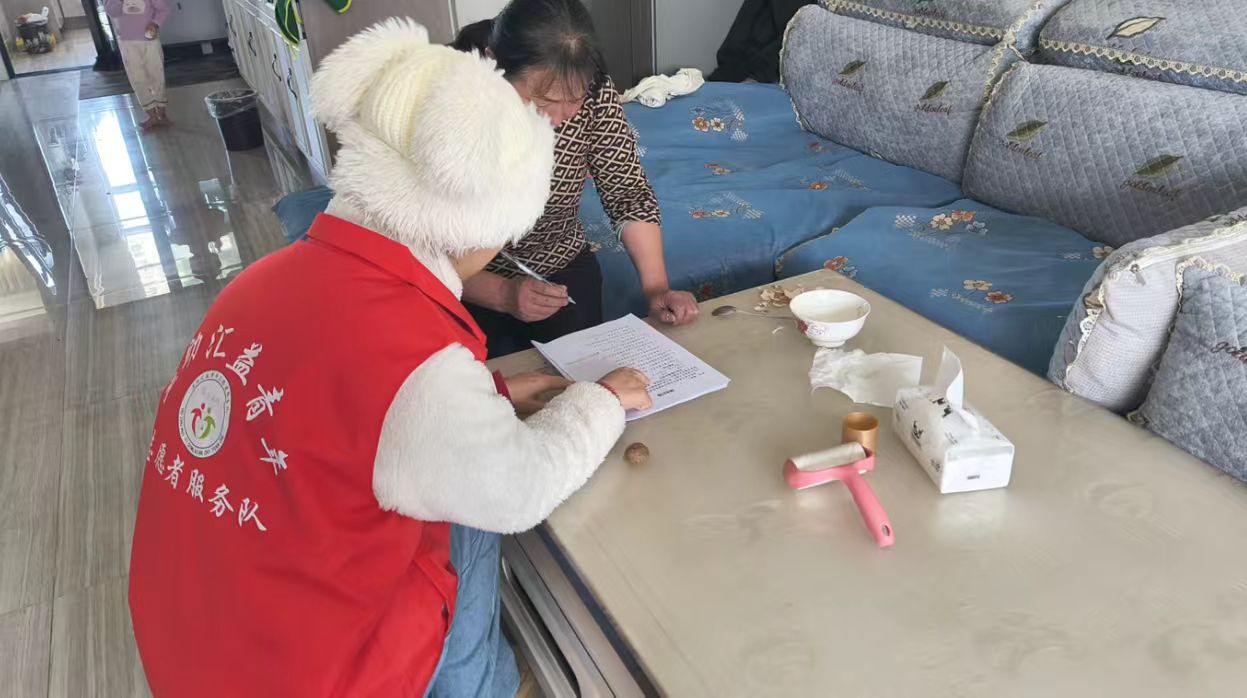 志愿者们首先成为基层工作的“好帮手”,走村入户在村民家门张贴医保缴费、养老认证等惠民通知,确保政策信息清晰传递;在村级春节活动筹备中,他们搬运物资、布置场地、拉起警戒线维护秩序,用细致服务保障活动顺利开展,为基层工作者分忧减负。