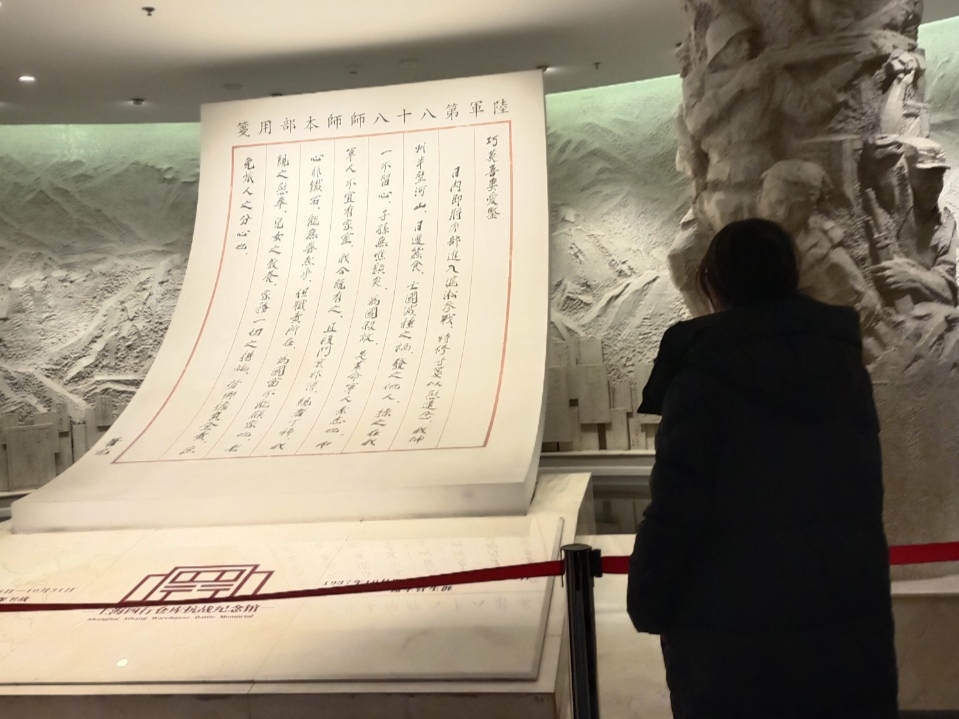 活动期间,实践队成员分工协作、有序推进各项任务。在红色教育环节,队员们先后前往乳山市相关抗战纪念馆,通过参观历史文物、研读文献资料、观看影像资料等方式,深入了解当地革命历史与发展脉络。在展厅内,队员们驻足“八一三淞沪抗战”主题展板前,仔细研读作战序列表与历史介绍;在巨型“用笺”雕塑前,深切感悟革命先辈的家国情怀与牺牲精神;在历史复原场景前,深刻体会中华民族在危难时刻的团结抗争精神。此外,队员们还运用短视频、图文直播等数字化手段,实时记录并传播参观过程中的所见所感,让更多青年通过云端感受红色文化的力量。