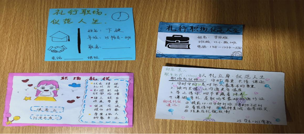 为进一步提升学生职业素养与求职竞争力,普及职场礼仪知识,3月19日,学院组织开展“礼行职场,仪范人生”创意名片设计活动。全院学生积极响应,以动手创作的形式深化对职场礼仪的理解,塑造专业职业形象。本次活动以“实用为先、创意赋能”为核心,由学生自主探索、自主完成。
