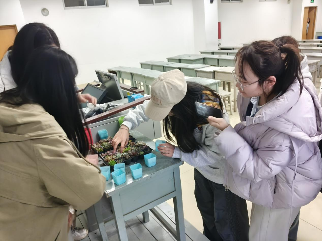 活动伊始,养护绿植心得分享环节温情开启。同学们依次上台,结合与绿植相伴的日常,畅谈养护中的收获与感悟:有人分享幼苗长成繁茂枝叶的耐心守候,有人讲述绿植为宿舍生活注入的生机与慰藉,更有人从植物生长中领悟责任与坚持的意义。真挚讲述赢得阵阵掌声,现场氛围温暖浓厚。分享结束后,大家有序上台挑选心仪绿植,在部门人员引导下,亲手完成取苗、填土、栽种、浇水等步骤,在专注劳作中感受生命力量,将绿色希望植入掌心,脸上满是欣喜与期待。